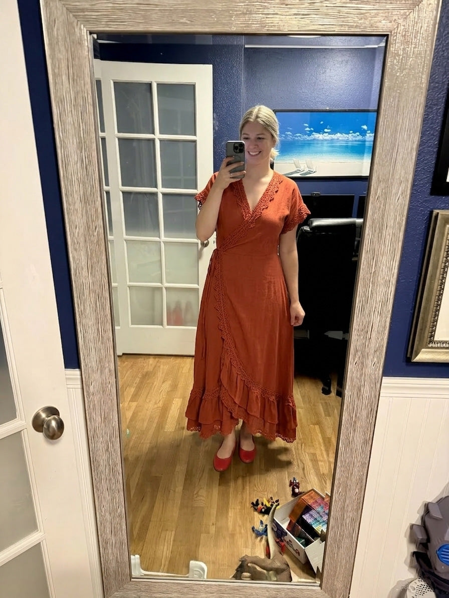 I love this dress! So pretty and great quality. I wore it to Disneyland and was so comfortable the whole time and got lots of compliments. I love the spacious pockets.