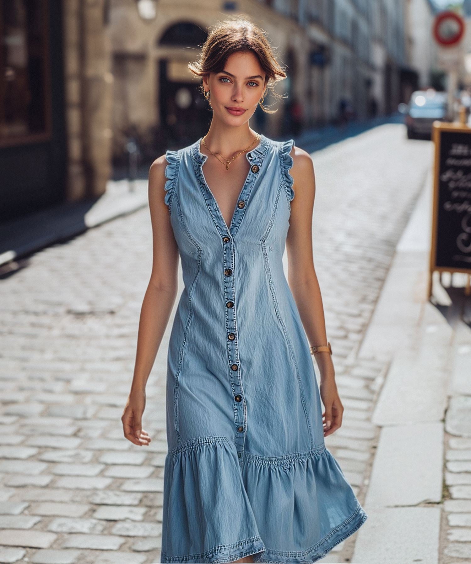 Retro Blue Sleeveless V-Neck Denim JumpsuitRetro Blue Sleeveless V-Neck Denim Jumpsuit- Regular price