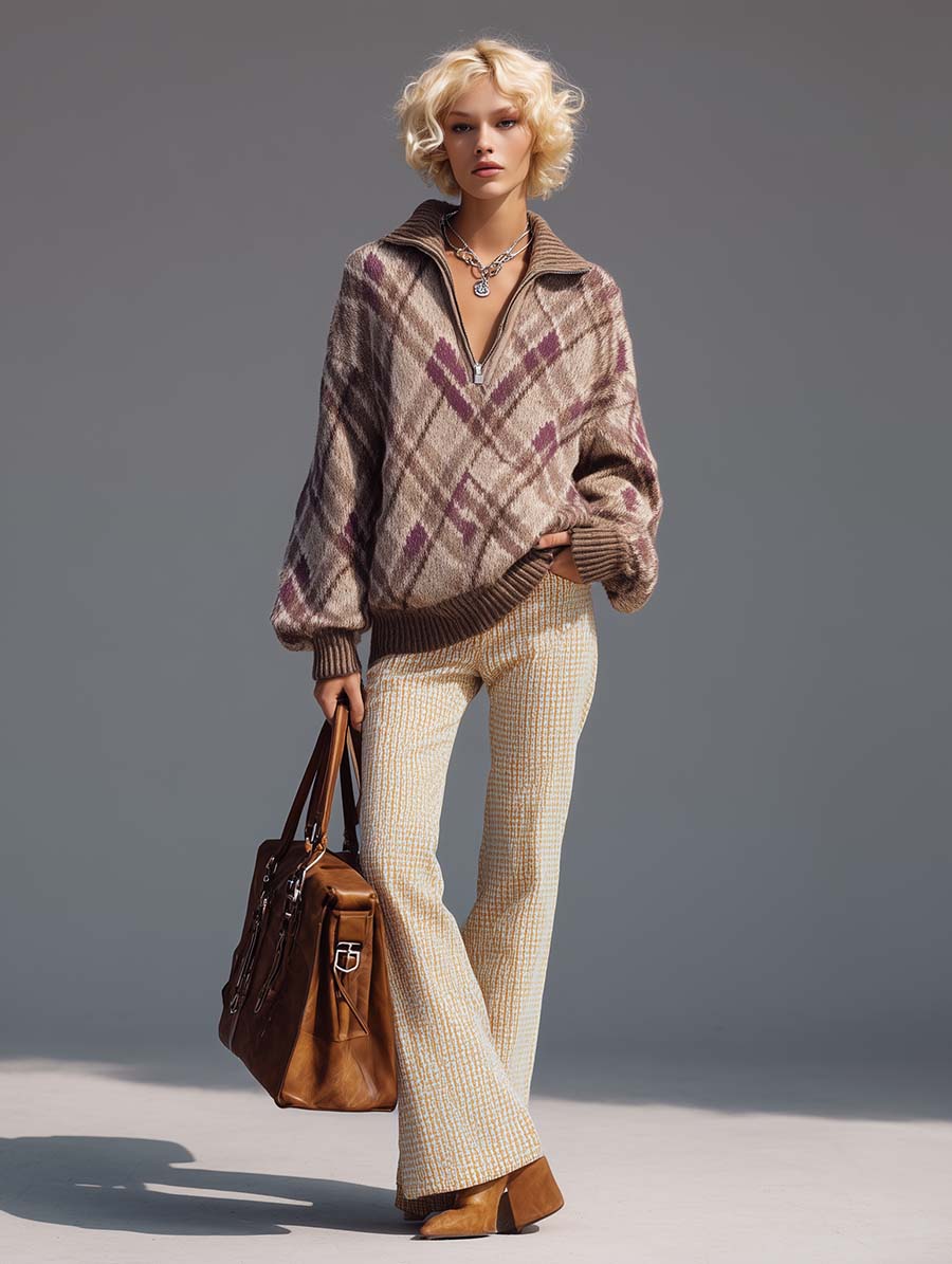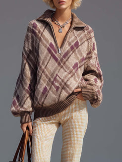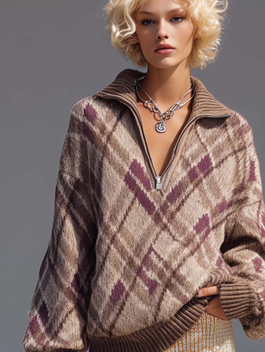This vintage purple zipper cardigan features a loose fit that flatters a wide range of body types. Pair it with jeans or velvet trousers for a casual look. Whether it's a day out or a casual get-together with friends, it's a versatile piece for any occasion.