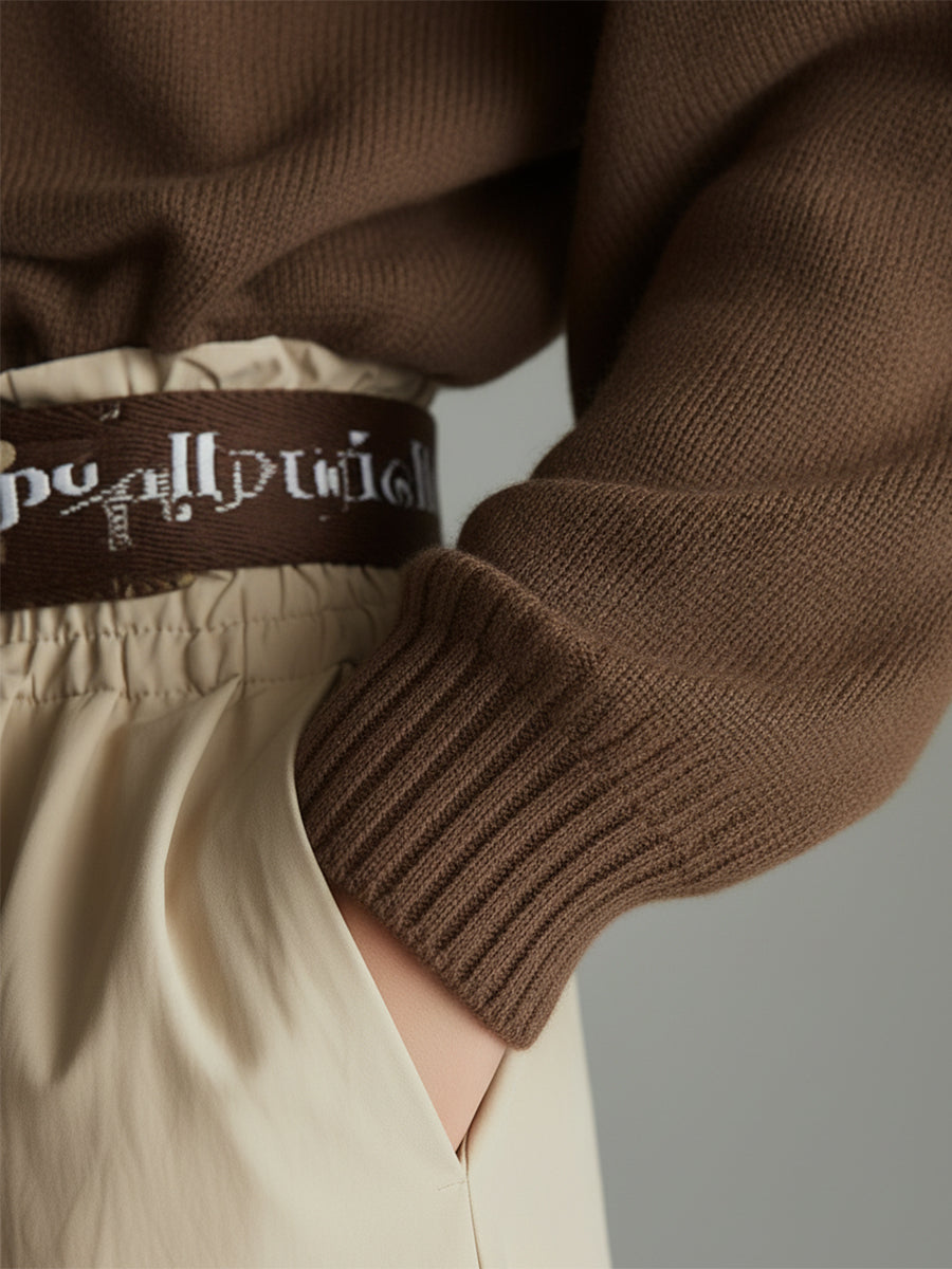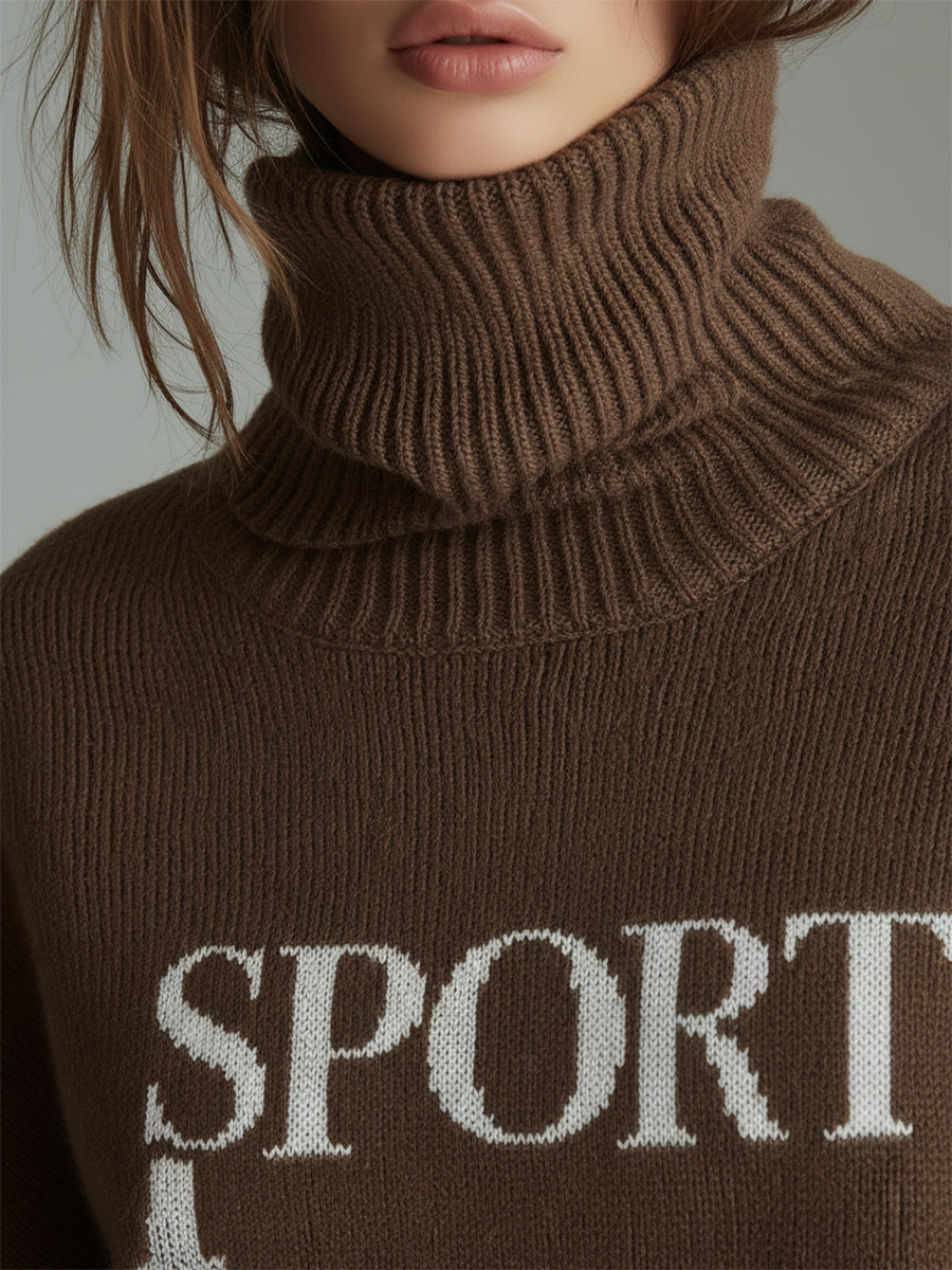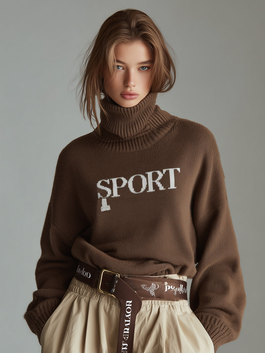 Designed with comfort in mind, this turtleneck sweater is made from soft, breathable materials that provide warmth without being too heavy. Its turtleneck design not only offers extra coverage on chilly days but also adds an element of sophistication to the overall look. Pair it with high-waisted denim or tailored trousers for a polished outfit, or opt for more relaxed styles like joggers for a laid-back vibe. Whether you're enjoying a casual day out, cozying up at home, or heading to a coffee date, the Simple Loose Turtleneck Letter Brown Sweater is the perfect blend of style and comfort, making it a must-have for any fashion-forward wardrobe.