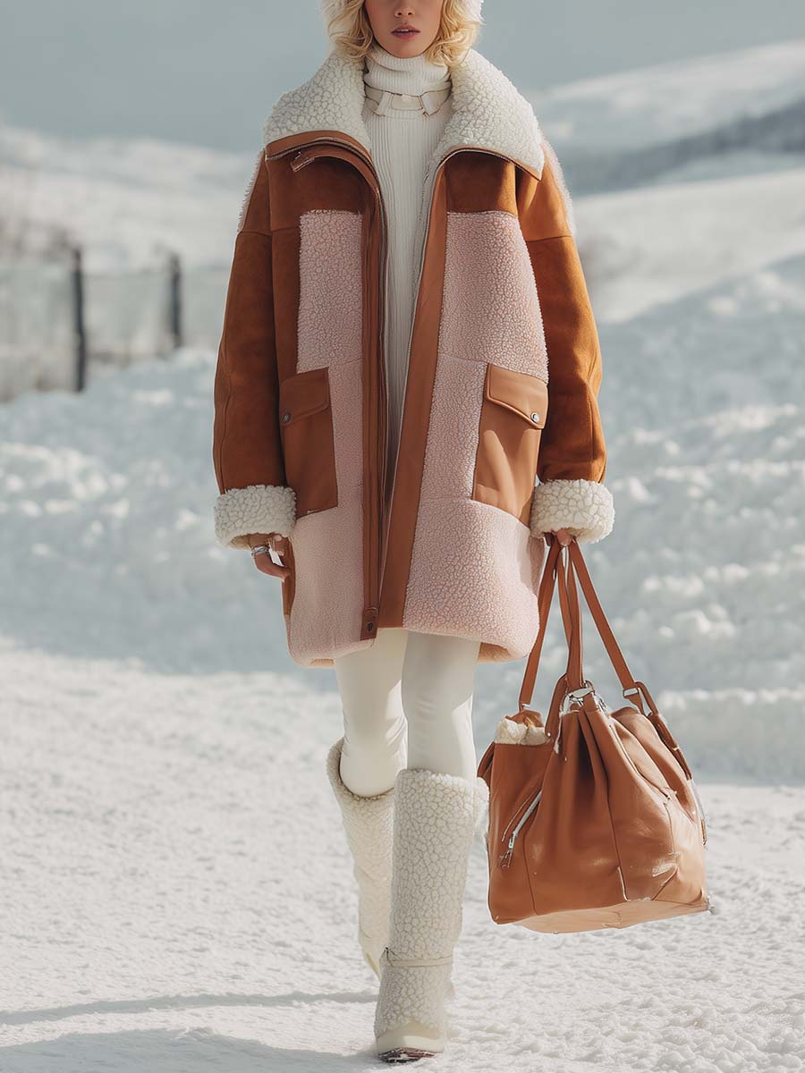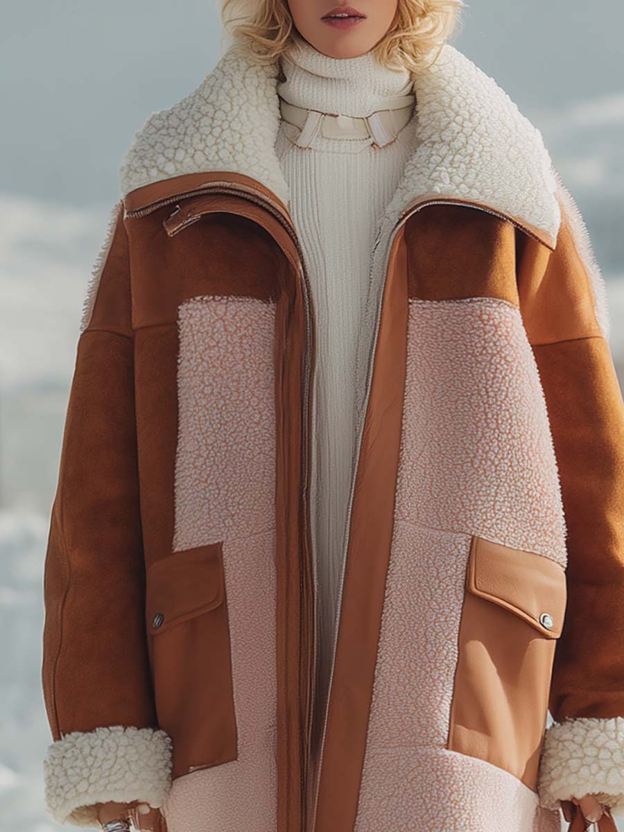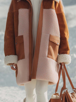 This vintage western-style coat seamlessly blends rugged charm with contemporary flair. Featuring a luxurious brown suede exterior coupled with a soft, cozy pink polar fleece lining, it promises both style and comfort. The coat showcases a classic lapel design and a convenient front zipper, making it easy to layer over your casual and outdoor outfits.