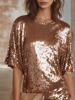 1. Material: Elegant champagne color with a dazzling sequin finish
