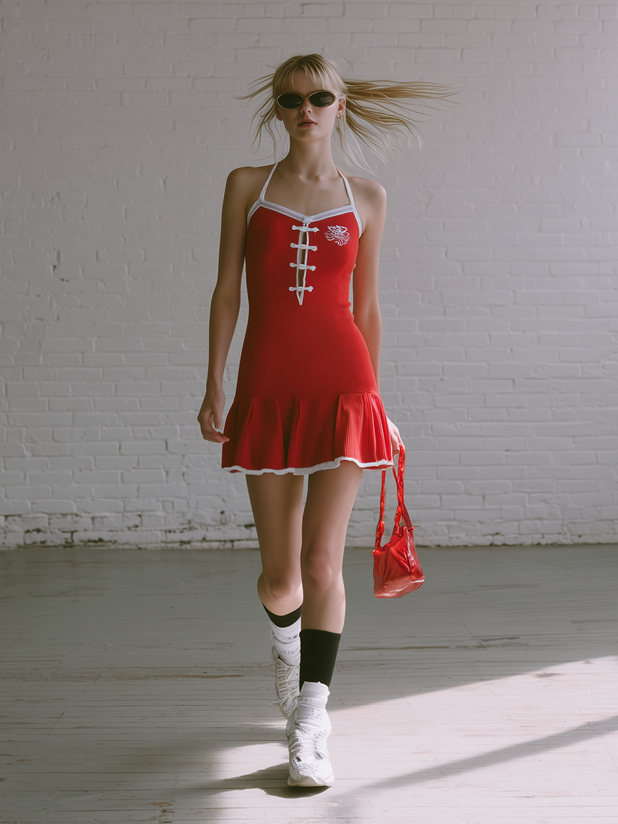 This Retro-style Sleeveless Strap Embroidered Frog Closures Pleated Red Mini Dress is an ideal choice for those who appreciate vintage-inspired apparel with modern comfort. Whether dressing up for a special occasion or adding a pop of color to your everyday wardrobe, this dress is versatile, stylish, and sure to turn heads.
