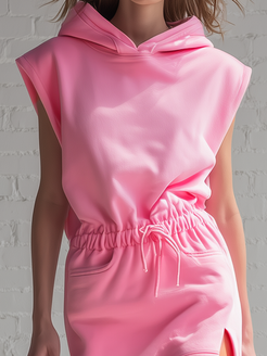 The Stylish Simple Loose-fitting Sleeveless Hooded Side Slits Cotton Pink Mini Dress is a must-have for anyone seeking a blend of comfort and style. This dress is ideal for everyday wear, offering a chic and laid-back vibe suitable for a variety of occasions. Its thoughtful design elements make it a standout piece in any wardrobe.