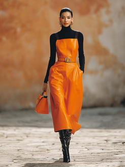 This outfit is perfect for a variety of casual to semi-casual settings, from a fun day out with friends to casual dining or shopping excursions. For an effortlessly stylish look, pair the set with trendy ankle boots or platform sneakers and accessorize with a crossbody bag and oversized sunglasses for a retro vibe. During cooler months, you can layer the T-shirt with a fitted turtleneck underneath or throw on a denim jacket for added warmth and style. Whether you’re attending a weekend brunch or exploring a local market, the retro fashion long sleeve T-shirt and faux leather overall skirt set is sure to make a fashionable statement while keeping you comfortable and confident.