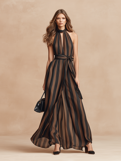 2. Design: Halter-neck design,the black and brown stripes add a bold yet versatile color palette.