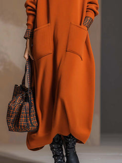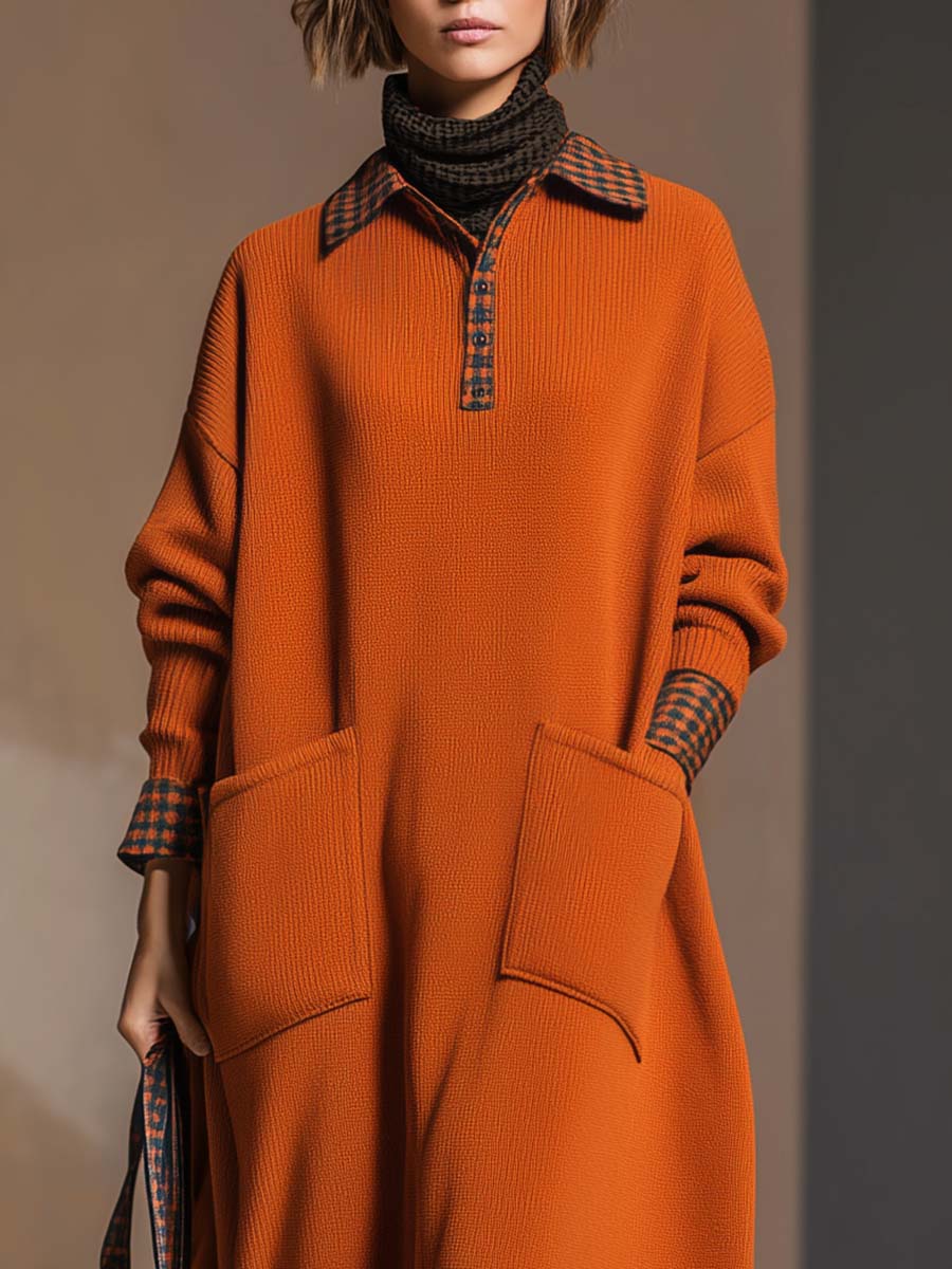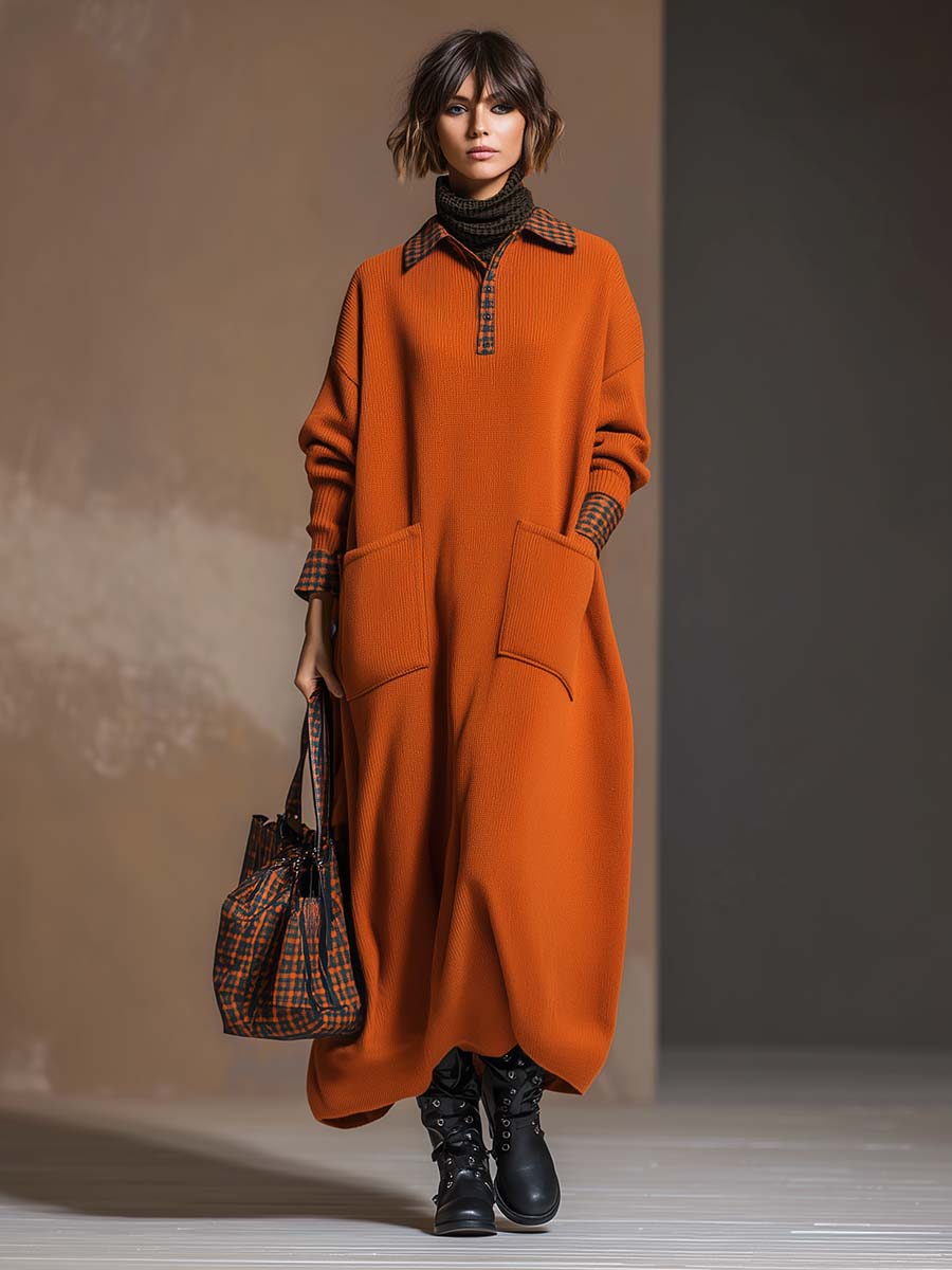 This Vintage Plaid Polo Big Pocket Orange Knitted Straight Maxi Dress is the perfect blend of retro flair and modern elegance. Crafted from premium knitted fabric, it features a striking orange plaid pattern that adds a vibrant touch to your wardrobe. The dress comes with a stylish polo neckline and an eye-catching big pocket design, making it both functional and fashionable.