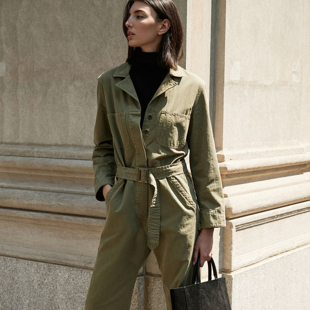 2.Design: Stand collar, long sleeves, wide-leg pants