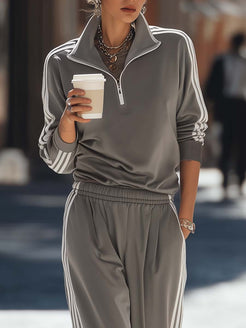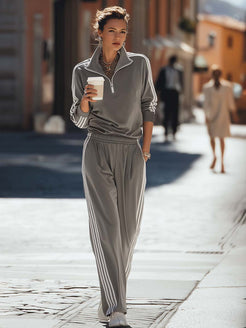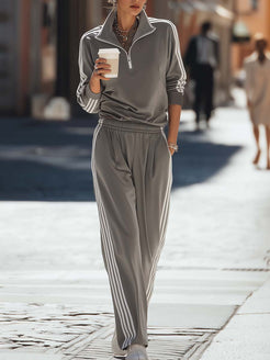 Explore style and comfort with our Casual Fashion Simple Gray Cotton Lapel Front Zipper Top And Pants Set. Designed with an effortless look, this set brings together functionality and contemporary fashion seamlessly. Perfect for both lounging at home and stepping out, this set is a wardrobe must-have.