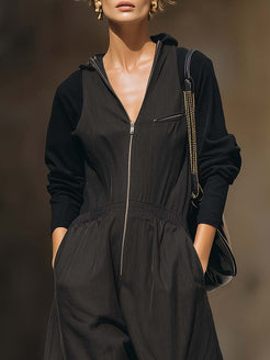 Introducing the Casual Fashion Urban Hooded Sleeveless Front Zipper Black Loose Jumpsuit, a perfect blend of style and comfort. Designed for the modern urbanite, this jumpsuit effortlessly combines functionality with a chic, laid-back look.