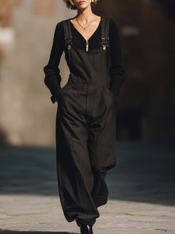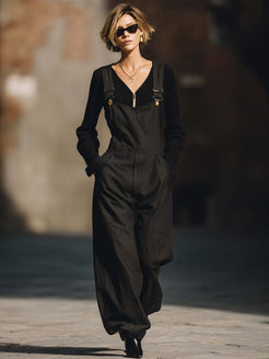This Simple and Versatile Street Black High-quality Denim Wide-leg Jumpsuit Overalls is a stylish and modern piece that combines comfort with a trendy design. Crafted from durable, top-notch denim fabric, this jumpsuit is designed to meet the demands of today's fashion-forward individuals.