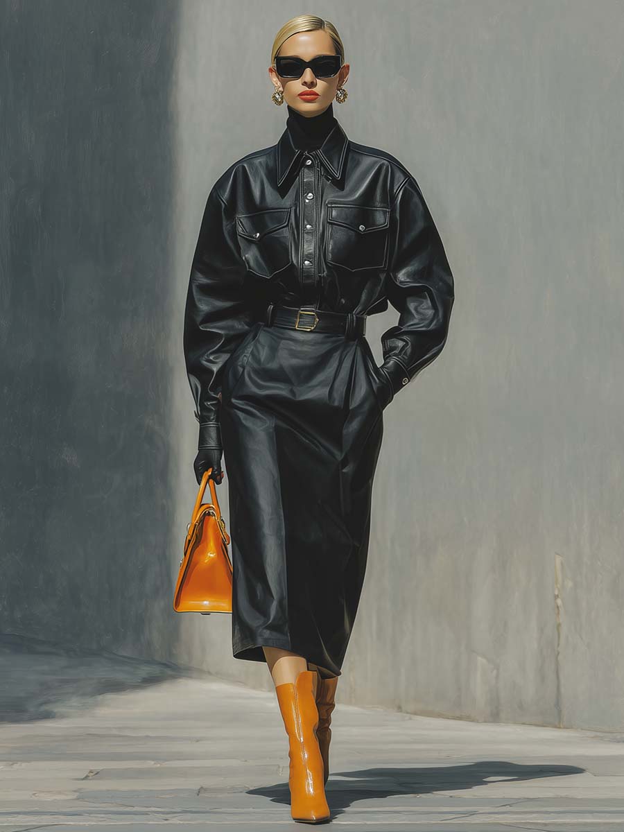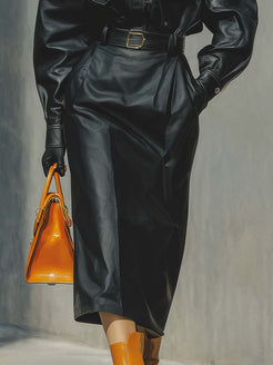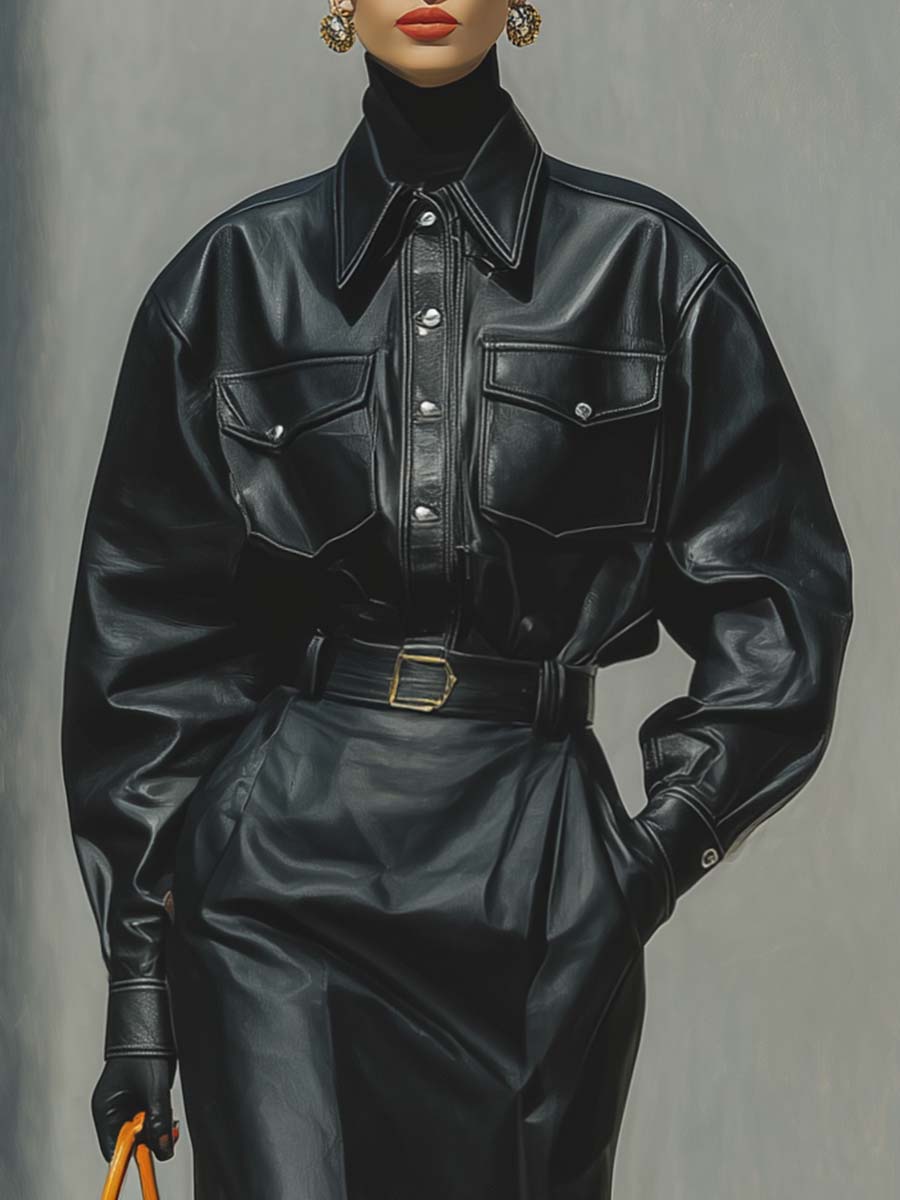 This exquisite urban black leather jacket and skirt set is a true epitome of elegance and style, perfect for the modern woman who seeks both sophistication and bold fashion statements. Crafted from high-quality leather, this stunning duo offers an unmatched combination of comfort and high fashion.