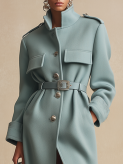 This coat draws its "retro" and "elegant" character from a fusion of classic military and workwear influences. The stand collar (often called a "mandarin" or "band" collar) provides a clean, structured silhouette that is both sophisticated and slightly minimalist, evoking mid-20th-century styling.