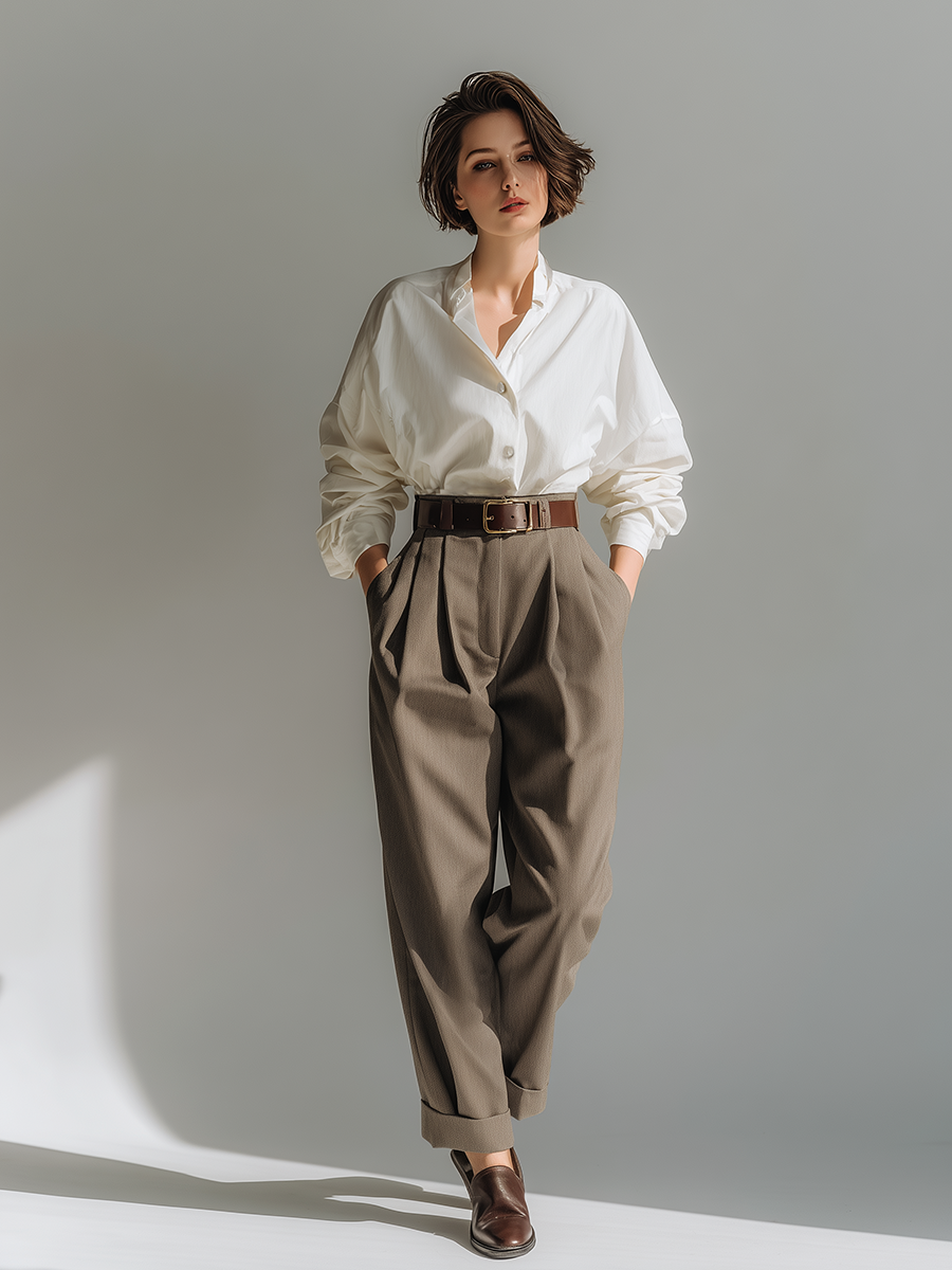 This shirt and trousers set is perfect for various occasions, from professional settings to social gatherings. For a polished office look, you can pair the ensemble with sleek pumps or loafers, accessorizing with understated jewelry and a structured handbag to maintain a professional vibe. If you're heading out for an evening event, elevate your outfit with statement heels and bold accessories, like a statement necklace or a chic belt, to add a touch of personality. Whether you’re attending a business meeting, enjoying a dinner with friends, or heading to a special occasion, the elegant shirt and trousers set is a versatile choice that exudes confidence and sophistication.