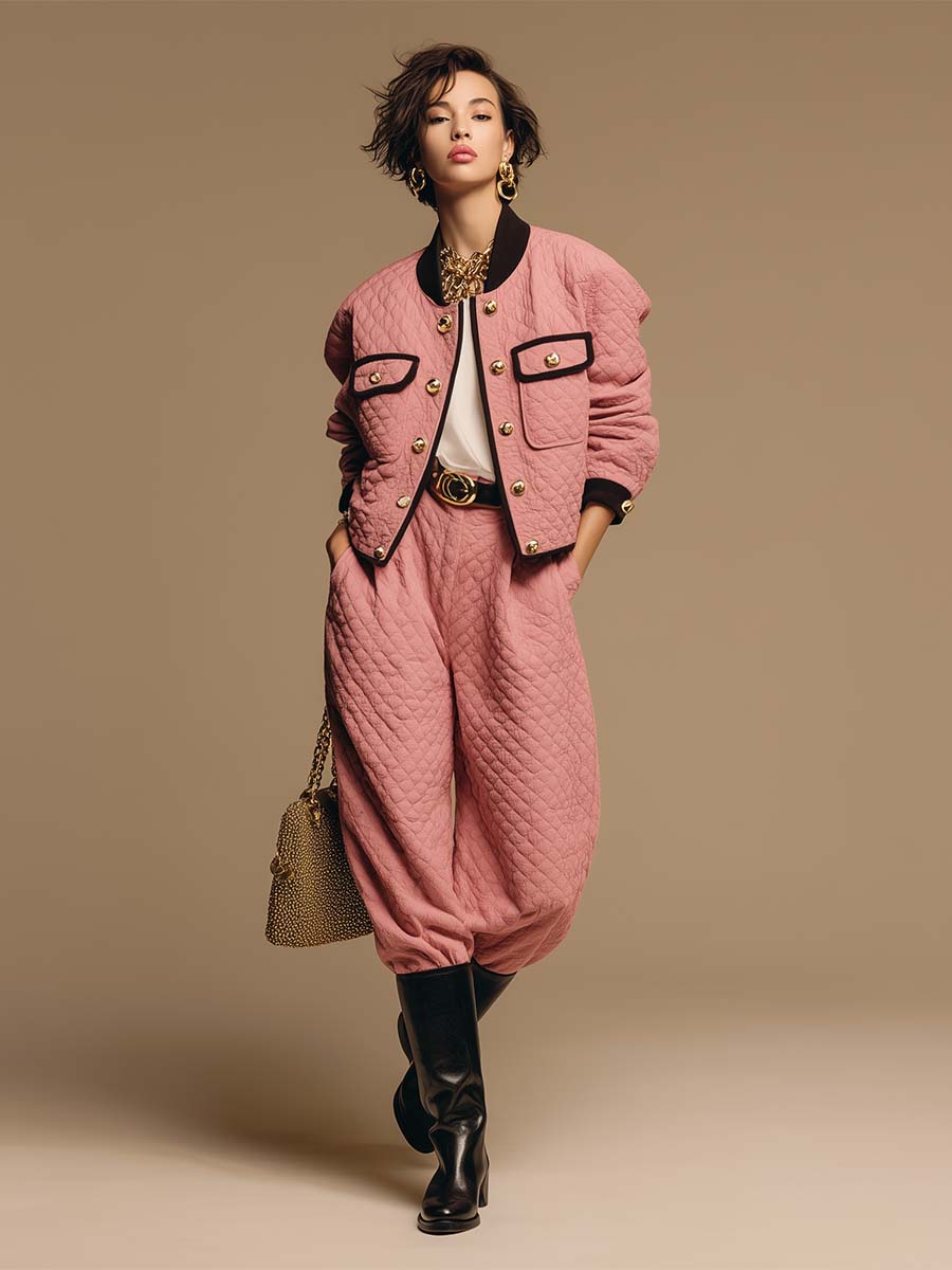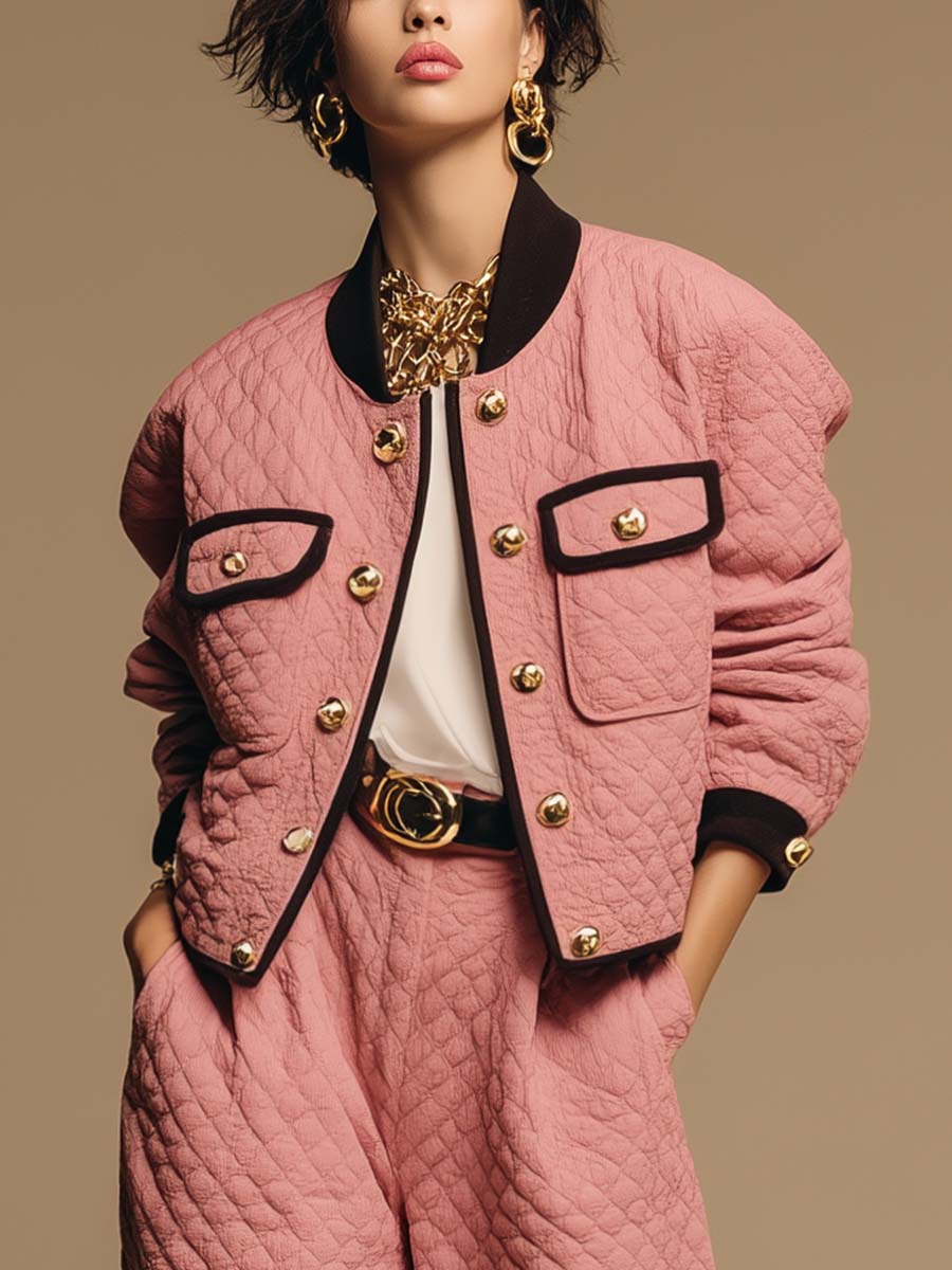 Get ready to elevate your wardrobe with this exquisite baseball jacket and pants set. This set features a beautifully quilted cotton fabric, creating a delightful retro aesthetic that's both casual and stylish. The front button features add a touch of classic baseball jacket charm while ensuring ease of wear.