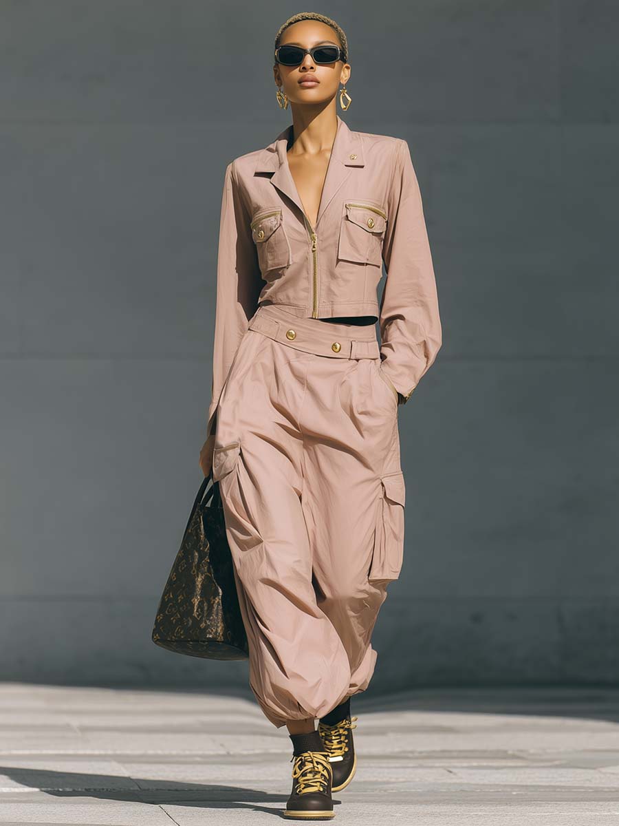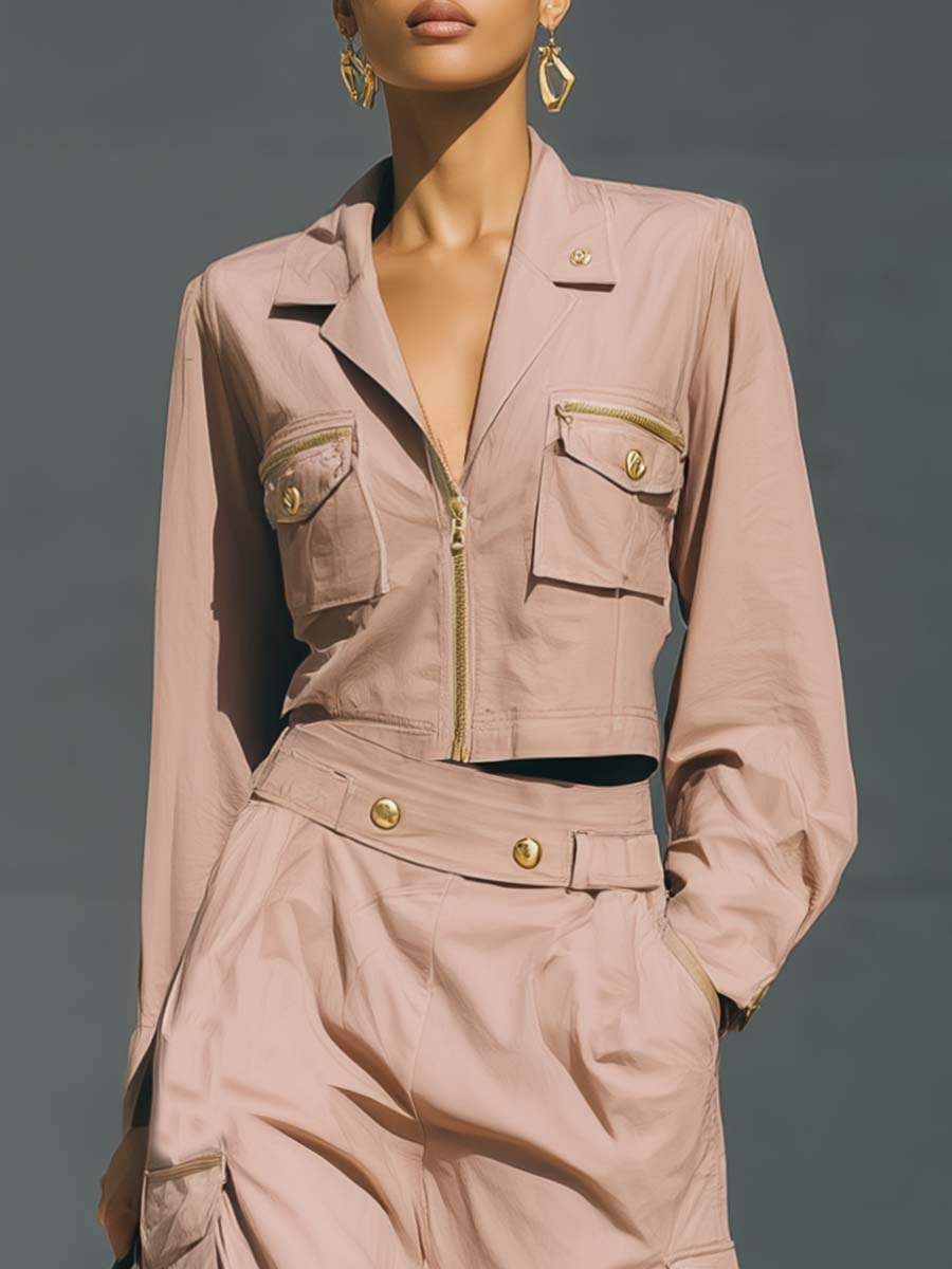 Introducing the Exquisite Casual Sporty Pink V-neck Front Zipper Jacket And Cargo Pocket Pants Set. This matching set is designed for fashion-forward individuals who want to maintain a sporty and casual look while ensuring comfort and versatility. The vibrant pink hue adds a fresh and energetic touch to your wardrobe, ideal for making a stylish statement.