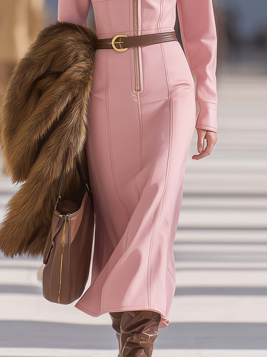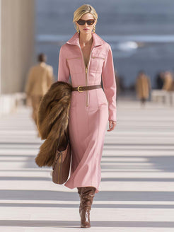 The Exquisite Casual Versatile Lapel Front Zipper Belt Pink Maxi Dress is an elegant addition to any wardrobe, designed with both style and comfort in mind. The dress features a delicate shade of pink that lends a soft and feminine touch, perfect for a variety of occasions.