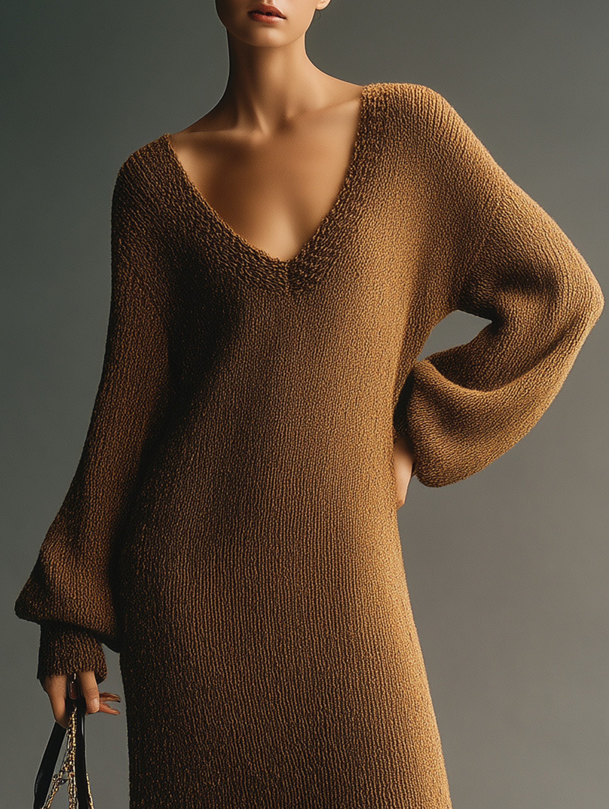 The Textured Deep V-neck Knitted Midi Dress is an essential wardrobe piece for anyone looking to combine comfort with elegance. With its versatile design and flattering cut, it is perfect for both casual and formal occasions. Whether dressed up or down, it is sure to make a stylish statement.
