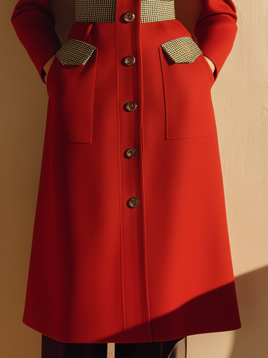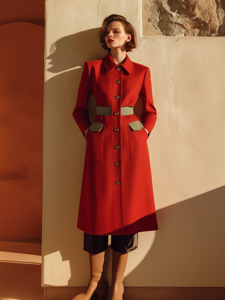 Designed with meticulous attention to detail, the coat often features a tailored fit that flatters the figure while offering functional elements such as a sleek lapel, double-breasted buttons, and discreet pockets for added convenience. The gold ribbon can be tied in a bow or left to flow, allowing you to customize the look based on your style preference. This versatile piece can be effortlessly layered over a fitted dress for a polished evening ensemble or paired with high-waisted trousers and ankle boots for a chic daytime look. The High-End Fashionable Gold Ribbon at Waist Red Woolen Coat is not merely an outer layer; it is a statement piece that exudes confidence and elegance, making it an essential addition to any fashion-forward closet.