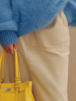 What sets this skirt apart is its statement-making oversized pockets, a bold yet functional detail that channels utilitarian chic. These large pockets add visual interest and practicality without compromising the skirt’s refined aesthetic. Whether styled with a tailored blouse for a gallery opening or a tucked-in tee for weekend errands, this piece anchors any outfit with quiet confidence and timeless appeal. Ideal for those who value understated elegance with a modern edge.