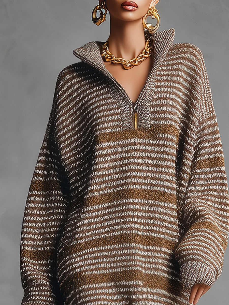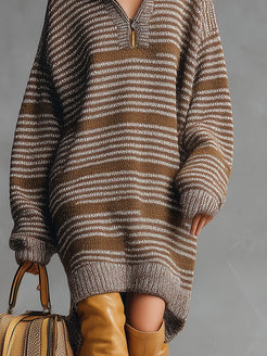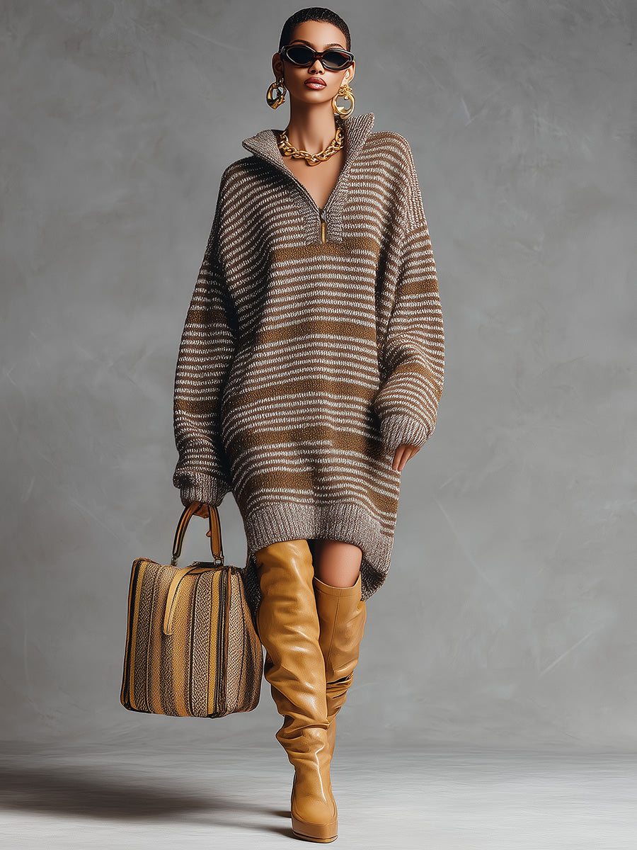 Key Features: 1.Material: Premium, soft knit for comfort and warmth This Loose Casual Lapel Front Zipper Brown Striped Knitted Midi Dress is a perfect blend of comfort and style. Crafted with precision, it features an easy-going, relaxed fit that is suitable for a range of occasions. The dress is knitted with high-quality fabric that not only provides warmth but also adds a touch of elegance through its brown striped pattern. Pair this midi dress with ankle boots or sneakers for a casual day out. For a more polished look, add a sleek belt and heels. Layer with a long coat or a cardigan during cooler weather to accentuate its versatile style. |