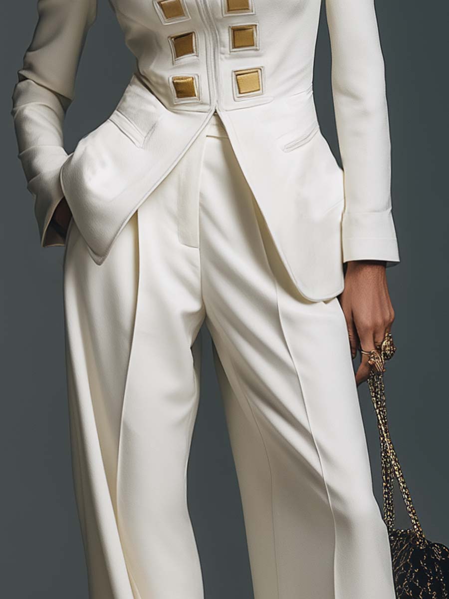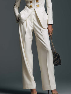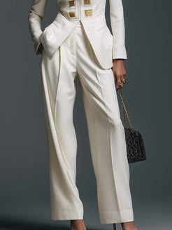 This collection of Neat and Stylish White Straight-leg Suit Pants exemplifies modern elegance with a touch of sophistication. Created with attention to detail, these pants are designed to provide a sleek and contemporary fit suitable for various occasions.