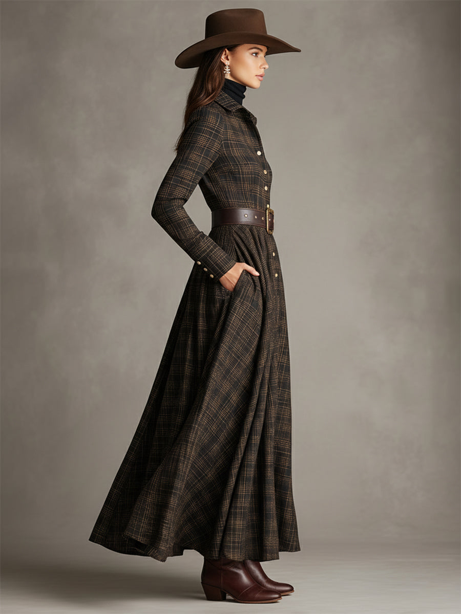 The design of the maxi dress emphasizes versatility, allowing it to be styled in various ways to suit your personal aesthetic. With features like short sleeves or adjustable straps, as well as details like pockets for added practicality, this dress is both functional and fashionable. You can easily pair it with sandals for a laid-back, bohemian vibe or dress it up with heels and statement jewelry for an evening out. The Retro and Fashionable Loose Plaid Maxi Dress encapsulates a timeless style that can be enjoyed across seasons, making it a must-have addition to any wardrobe that appreciates the charm of retro fashion.