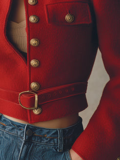 With its sleek yet cozy design, this jacket can be effortlessly layered over a variety of outfits, from casual jeans and a turtleneck to a more formal dress. Its retro-inspired silhouette recalls the elegance of vintage outerwear while offering contemporary comfort and style. Whether you're strolling through the city or heading to a dinner date, this woolen jacket provides a pop of color and sophistication that can easily elevate any look.