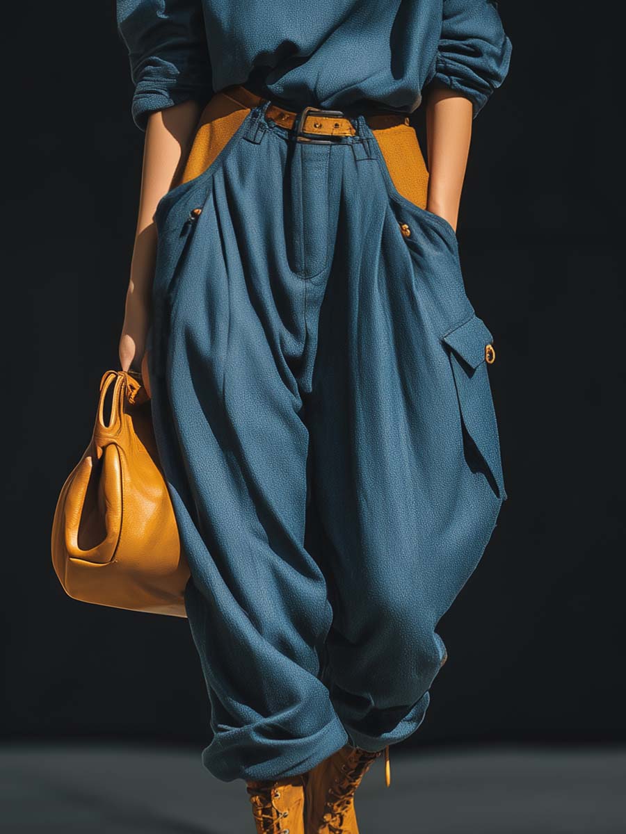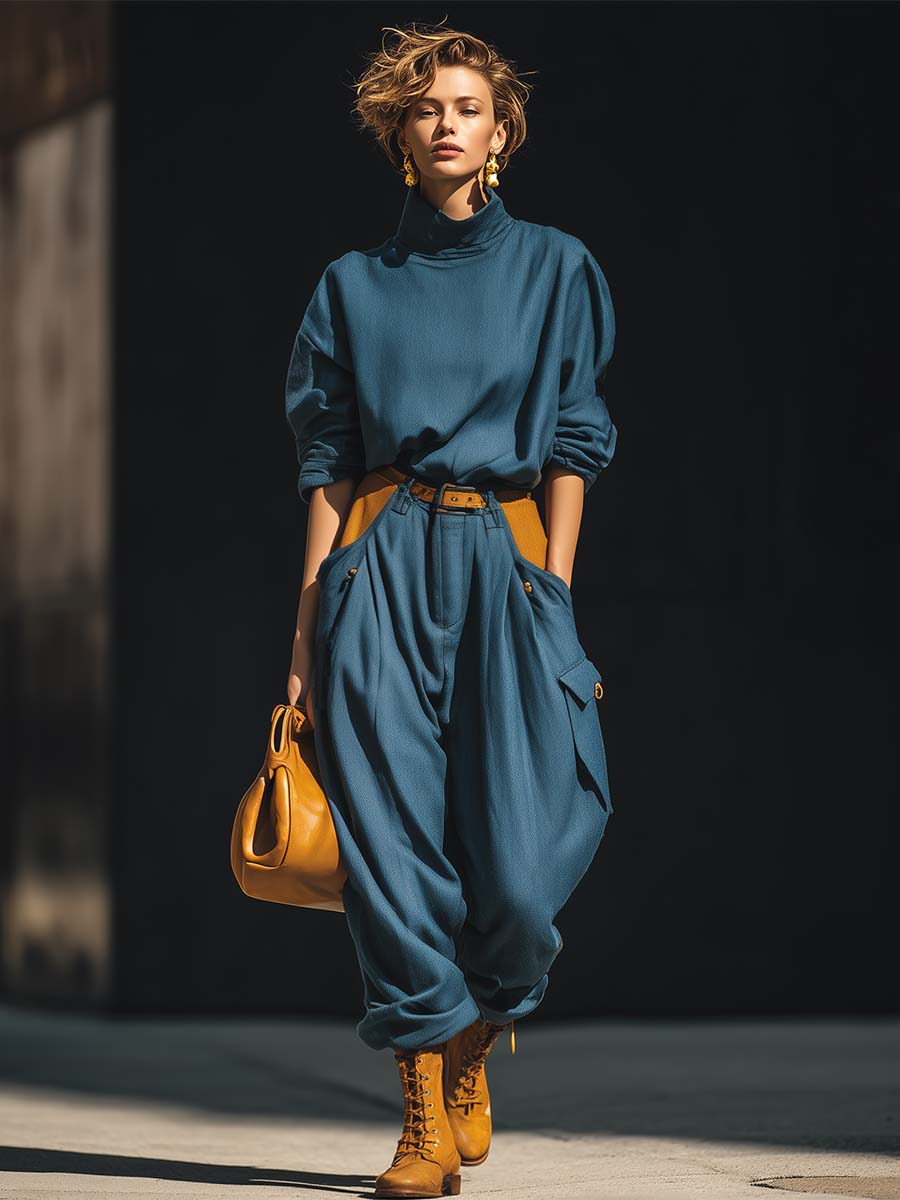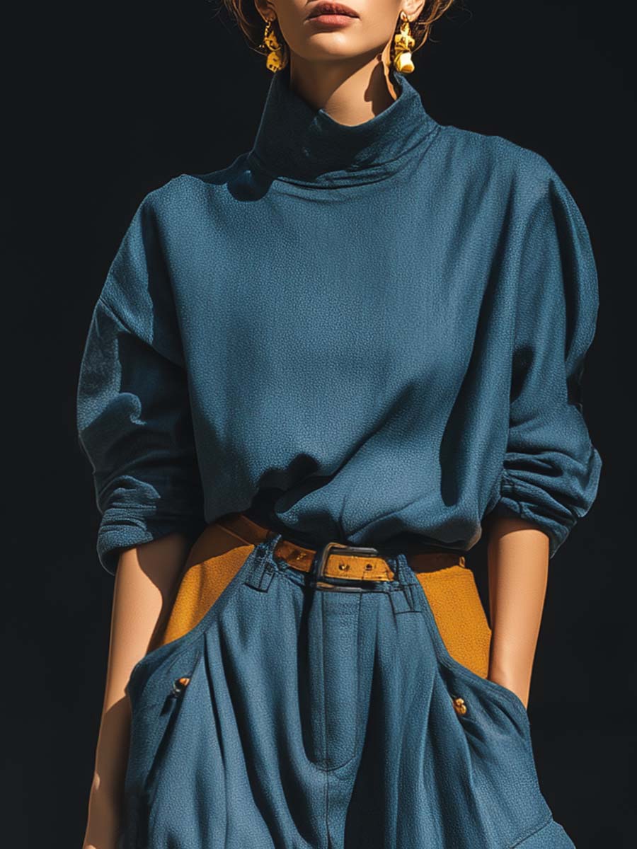 The Retro Casual Loose Blue Stand-up Collar Top and Contrast Wide Pants Set is a perfect blend of vintage charm and modern comfort. This fashionable set is designed to offer both style and ease, making it an ideal addition to your wardrobe.