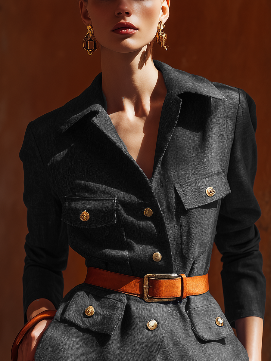This retro-chic black denim collared button-down jacket is a versatile classic, cleverly blending the charm of classic denim with a modern silhouette. This jacket combines comfort and style, making it ideal for those who love a mix of retro and modern looks.
