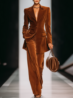 The retro elegant corduroy mid-length suit jacket and wide-leg pants set is a chic and sophisticated choice that effortlessly marries vintage style with modern sensibility. The mid-length blazer is tailored yet relaxed, featuring classic elements such as a notched lapel and a tailored silhouette that enhances your figure. Made from soft, luxurious corduroy, the jacket adds a rich texture and warmth, perfect for transitional weather. The wide-leg pants complement the jacket beautifully, offering a flowing silhouette that flatters various body types while providing comfort and versatility.