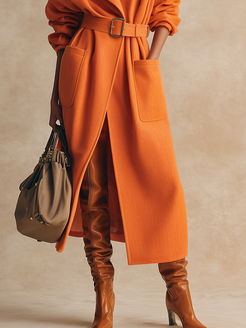 The retro elegant lapel belt long woolen coat is a timeless piece that exudes both sophistication and warmth. Crafted from high-quality woolen, this coat is designed to offer comfort and insulation, making it an ideal choice for cooler weather. The vintage-inspired lapel adds a touch of classic elegance, while the long silhouette enhances its graceful appeal. The inclusion of a belt provides not only a flattering fit by cinching the waist but also allows for versatility in styling, letting you personalize the silhouette to your preference.
