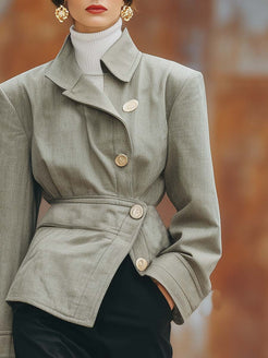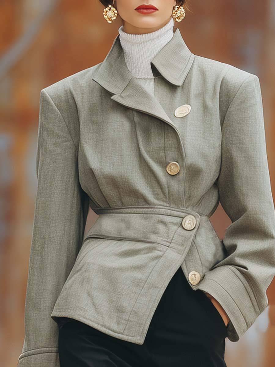 The Retro Exquisite Street Lapel Slant Placket Khaki Short Coat is a chic and versatile outerwear piece that effortlessly combines a retro aesthetic with modern-day fashion. Crafted from high-quality material, this coat is designed to offer both style and comfort, making it a perfect addition to your wardrobe for any season.