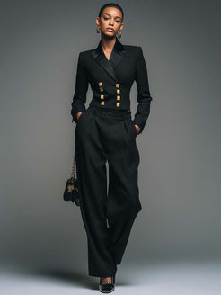 Introducing the Retro Fashion Black Peak Lapel Cropped Blazer and Trousers Suit, a perfect blend of classic style and modern flair. This suit features a cropped blazer with peak lapels and a pair of tailored trousers, exuding sophistication and elegance. Crafted for the fashion-forward individual, it's designed to make a statement.