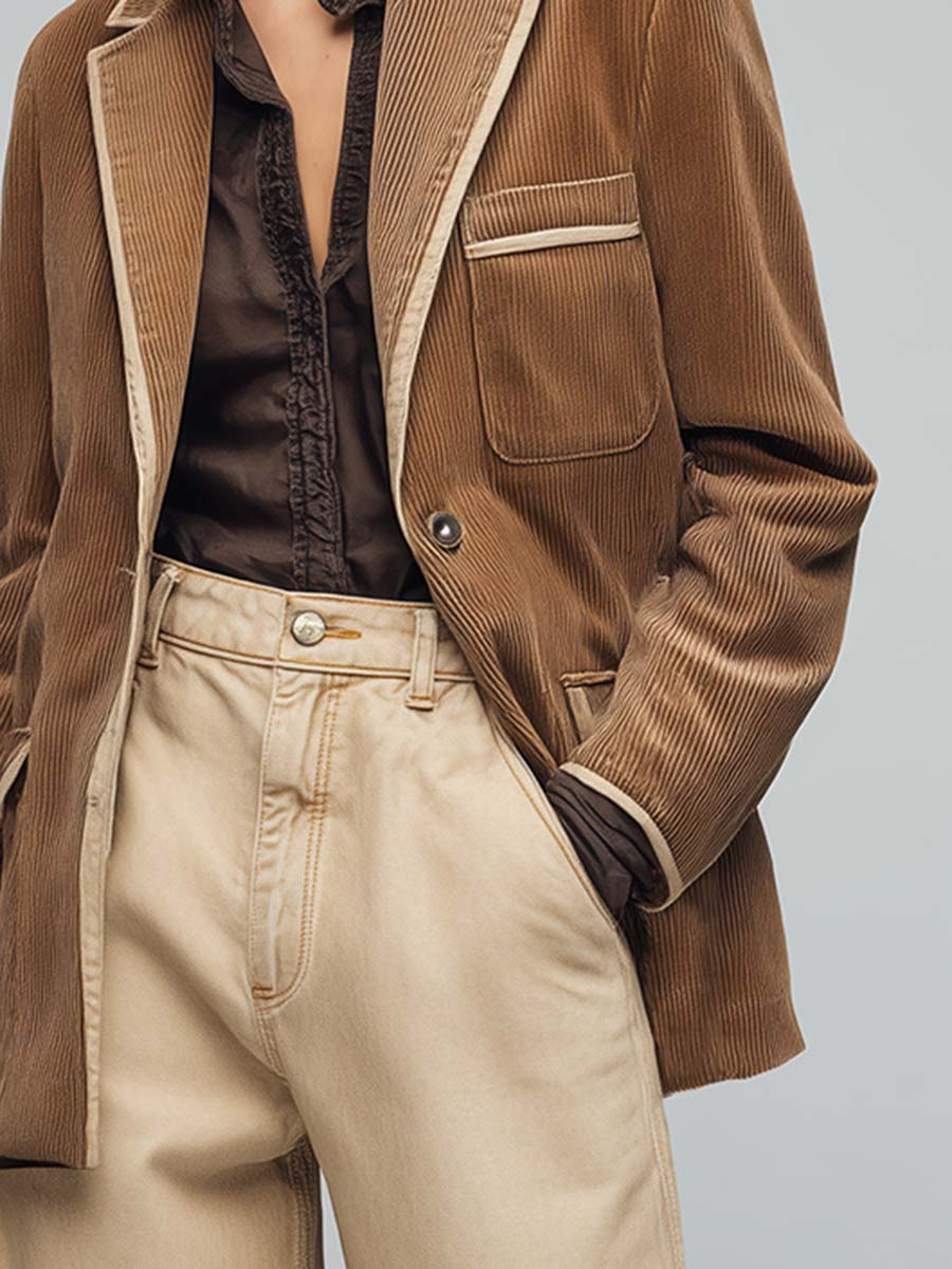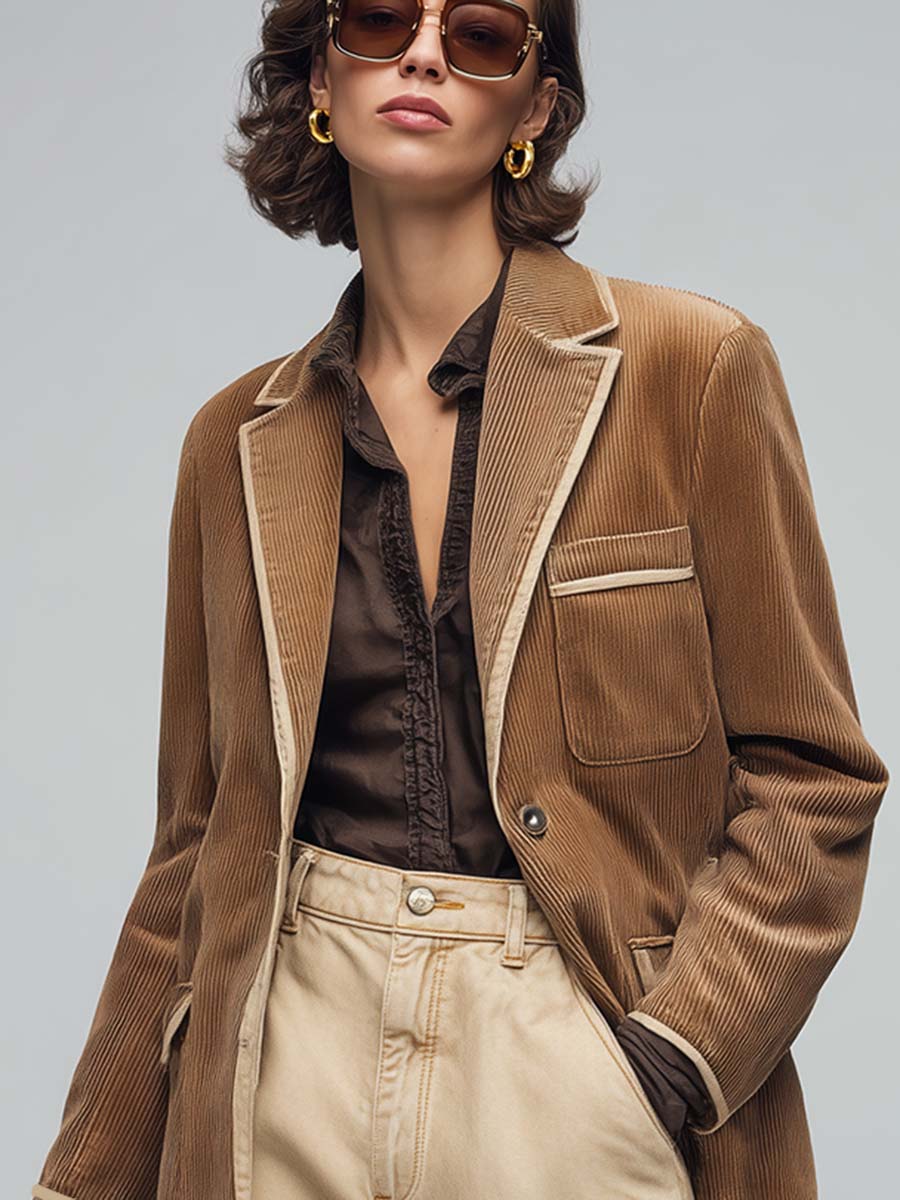 This vintage brown corduroy blazer is a retro and stylish addition to your wardrobe, adding a touch of vintage elegance and vibrant color. Creating such a unique piece is both fun and sophisticated.