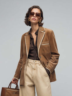 This vintage blazer can be paired with jeans or velvet trousers for versatile style, eliminating the hassle of pairing. It can be paired with a variety of shoes, including high heels and sneakers. The banded hem adds a touch of sophistication, complementing curly or any hairstyle. While showcasing its vintage charm, it incorporates modern elements to create a look that balances classic and modern style, making it a wardrobe essential.