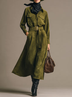 2.Design: Lapel, buttons, belt, pocketsHigh-quality imitation suede leather fabric, fashionable and retro
