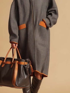 This retro fashion coat boasts a distinctive gray herringbone pattern that exudes sophistication and timeless style. Featuring a unique lapel design and front zipper closure, this coat strikes a balance between classic and contemporary aesthetics. The careful stitching and attention to detail make it a standout piece in any fashion-forward wardrobe.