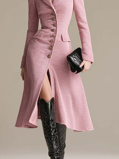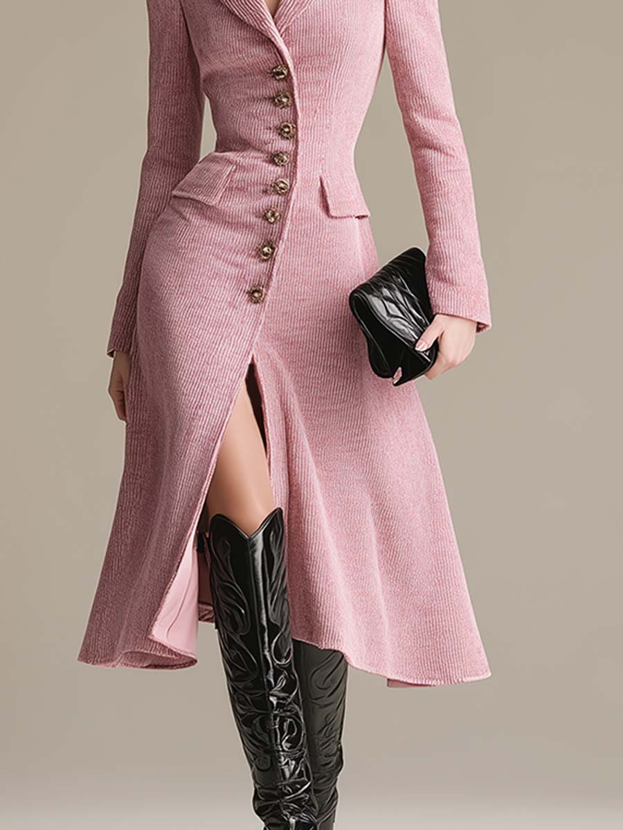This retro-chic pink corduroy midi dress is a wardrobe essential, combining style and comfort. The button closure adds a touch of personality and style. The pink color enhances a delicate and gentle look.