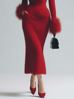 This stylish red knit midi dress is effortlessly versatile. Paired with a coat, it creates a luxurious, effortlessly elegant look, exuding a touch of retro elegance. Pair with heels and accessories for a stylish evening look.