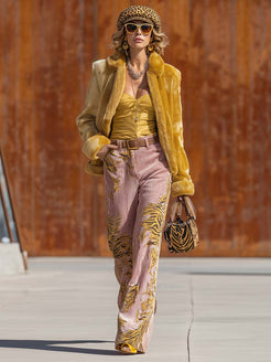 These Retro Personality Versatile Street Pink Textured Velvet Tiger Print Pants are a bold addition to any wardrobe. Made from high-quality velvet fabric, they offer a distinct texture that feels luxurious and soft against the skin. The striking tiger print against a pink background adds an artistic and edgy flair, perfect for those looking to make a fashion statement.