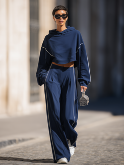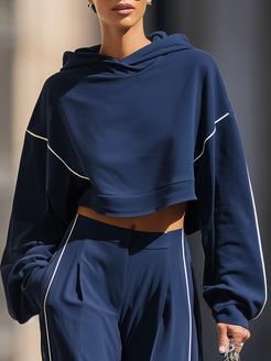 Styling this set is straightforward, providing versatility for a variety of casual occasions. For a laid-back look, pair the ensemble with classic white sneakers and a sleek backpack or crossbody bag, keeping accessories minimal to let the contrast trim stand out. Adding a cap or bucket hat can enhance the sporty aesthetic. For a more polished casual outfit, consider layering a lightweight bomber or denim jacket over the hoodie, and swap the sneakers for stylish high-tops or platform shoes. Whether you're running errands, hitting the gym, or enjoying a casual day out with friends, the sporty retro contrast trim hoodie and pants set offers a fashionable yet comfortable option that nods to retro influences while catering to contemporary tastes.