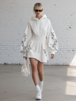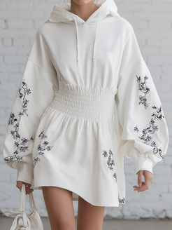 This Stylish Simple Loose-fitting Long-sleeved Hooded Embroidery Cinched Waist White Mini Dress is a must-have for those who appreciate both comfort and style. Its unique combination of features makes it suitable for a wide range of settings, ensuring you look effortlessly chic wherever you go.