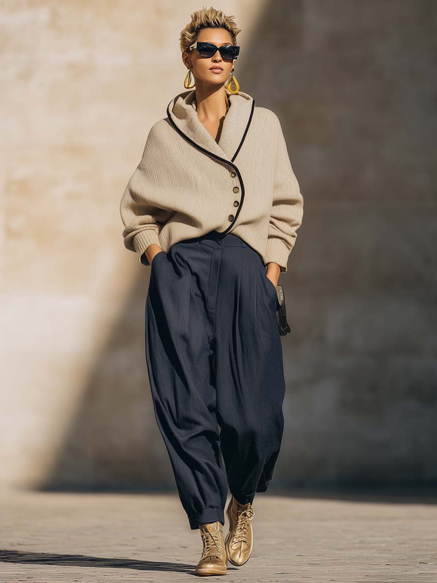 2.Design: The cardigan boasts a graceful lapel design with slant front buttons that deliver a chic and modern look.