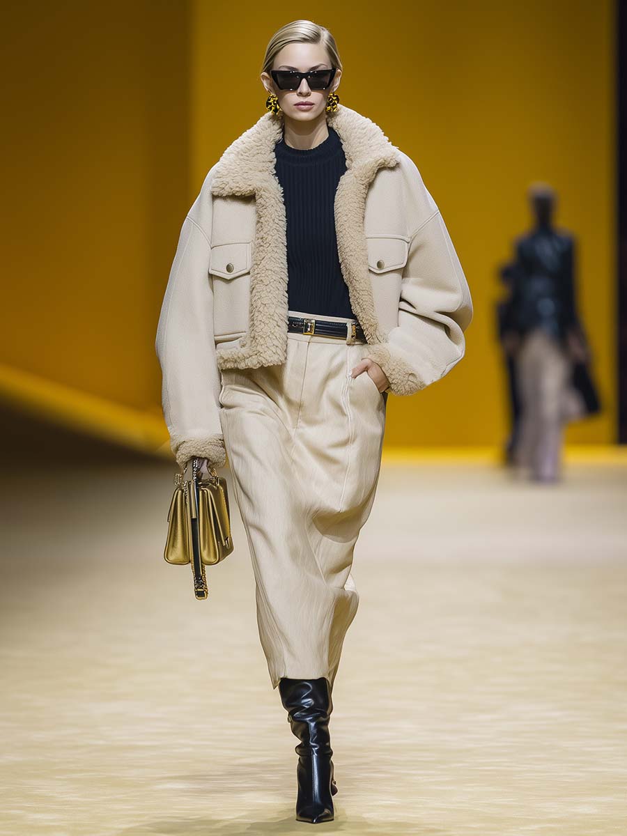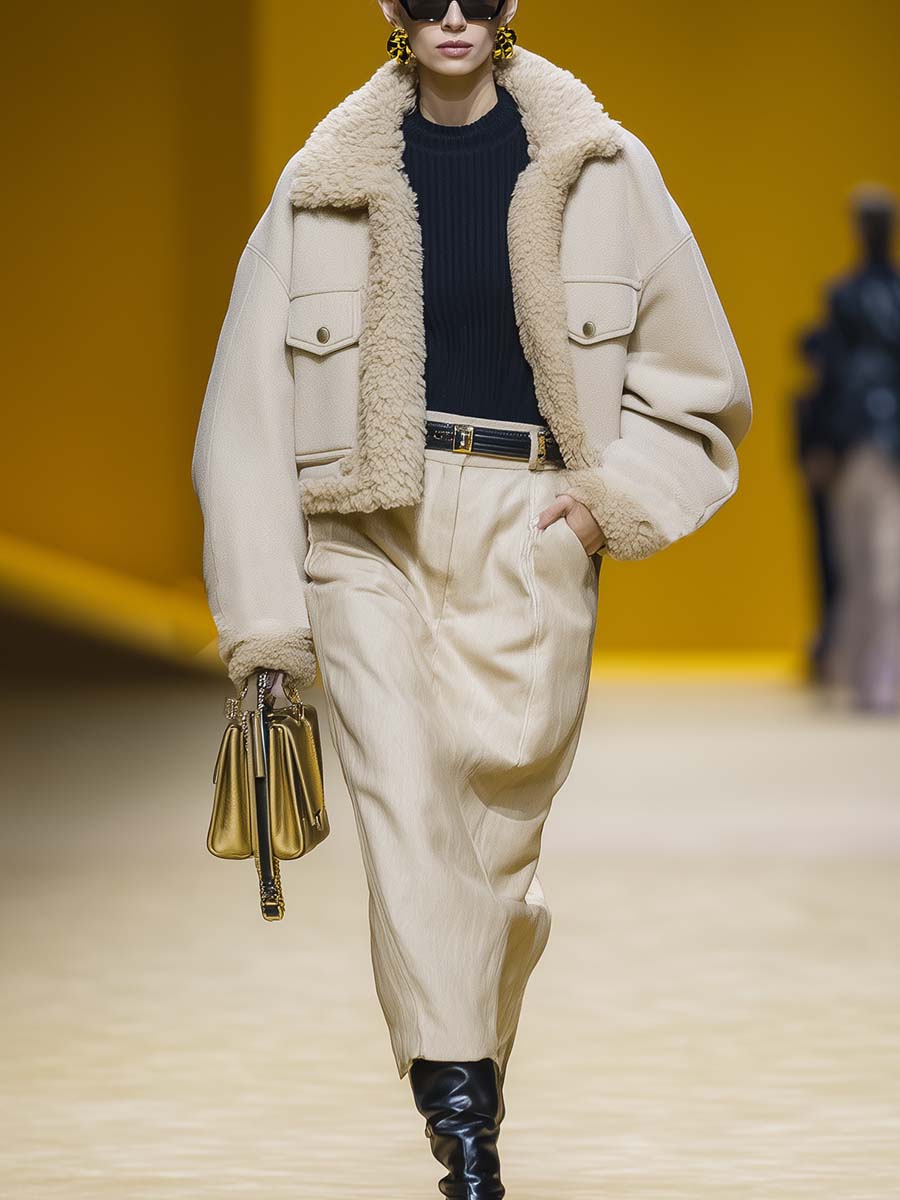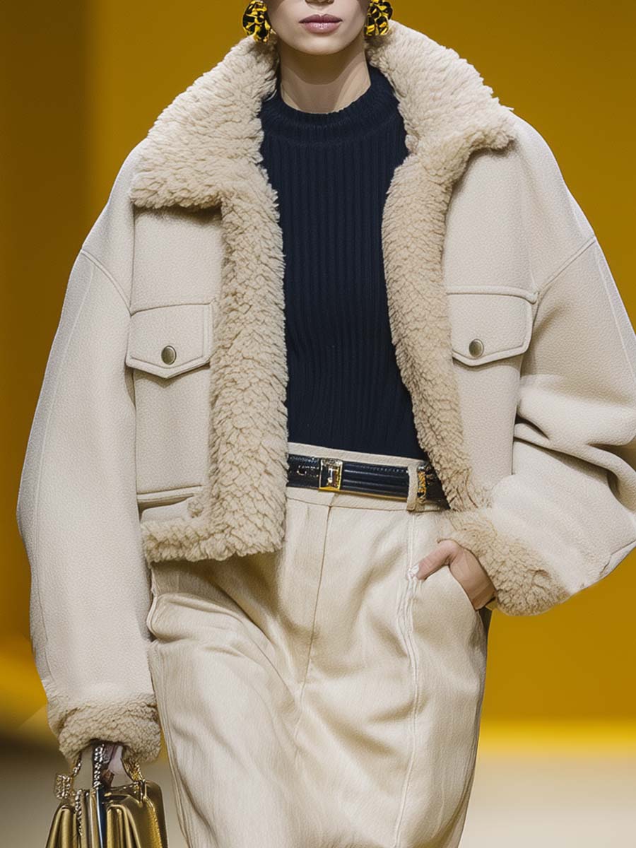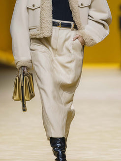The Temperament Exquisite Casual Urban Off-white Woolen Faux Fur Trim Jacket and Skirt Set combines elegance with contemporary style. This set features a beautifully tailored jacket with luxurious faux fur trim and a matching skirt, both crafted from high-quality off-white woolen fabric that is perfect for creating a sophisticated urban look.