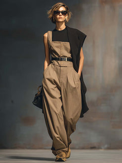The Temperament Versatile Urban Brown Square Collar Front Buckle Belt Jumpsuit is a chic and modern choice for the contemporary wardrobe. This jumpsuit combines utility with style, featuring a distinct square collar design and a front buckle belt that adds a touch of sophistication. The urban brown color is perfect for creating a warm and elegant look that can easily transition from day to night.
