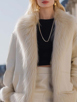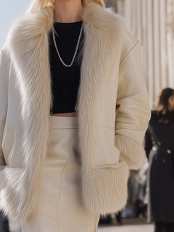 The Urban Elegance Fashion Faux Fur Trim Cream Faux Leather Jacket is a striking addition to any wardrobe. Featuring luxurious faux fur details, this jacket combines both elegance and coziness, offering a refined touch to your outfit. The jacket is crafted from high-quality faux leather in an elegant cream hue, which is both versatile and chic, making it perfect for modern urban settings.