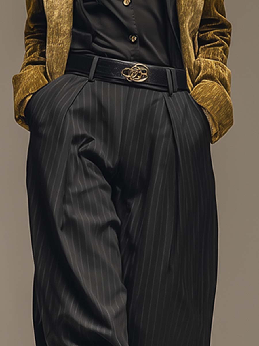 Introducing our elegantly designed Black Striped Wide-leg Tapered Pants, a perfect blend of comfort and style. These pants feature a contemporary silhouette with a modern twist, ensuring you stay ahead in the fashion game. The subtle black stripes add a touch of sophistication, making it a must-have staple in your wardrobe.