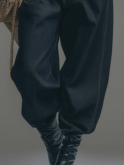 These dark blue denim pants pair perfectly with a crisp white shirt for a classic look or with a vibrant top for a more playful ensemble. Add a sleek leather belt and matching shoes to complete the outfit. For cooler weather, layer with a structured blazer to enhance the urban chic aesthetic.