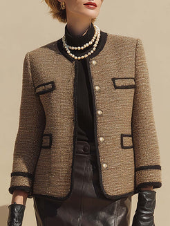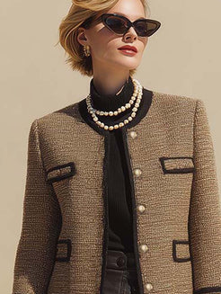This elegant and sophisticated brown tweed button-down blazer cleverly blends classic design with modern flair. Crafted from premium brown tweed fabric, its four-pocket design exudes a vintage-chic vibe, making it a must-have piece to elevate your wardrobe and offer sophisticated versatility.